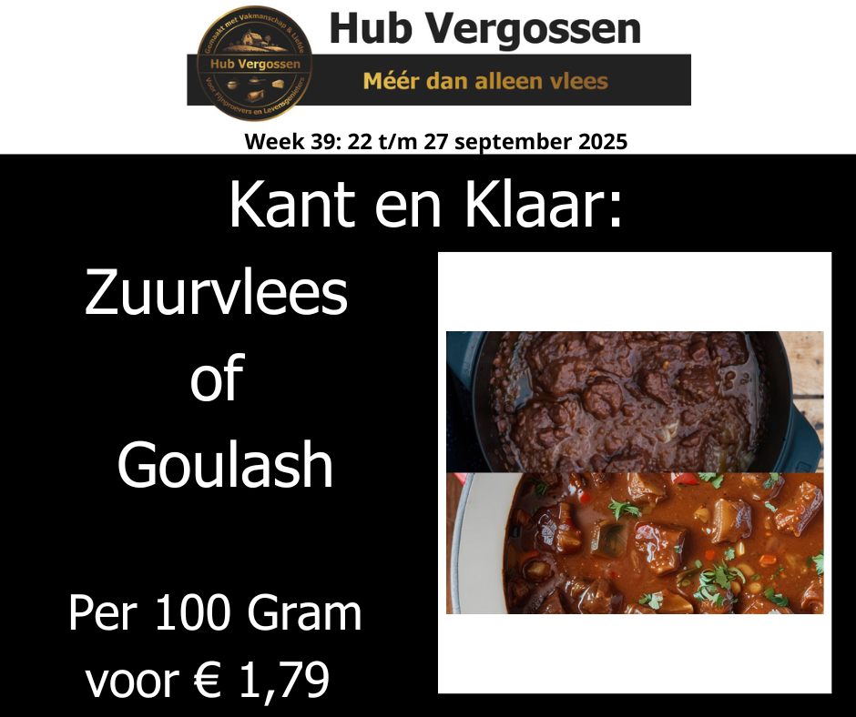 Kant en Klaar: Zuurvlees of Goulash, Per 100 Gram voor € 1,79 & Soep van de Week: Alle Varianten Maaltijdsoepen Per Pot voor € 4,25